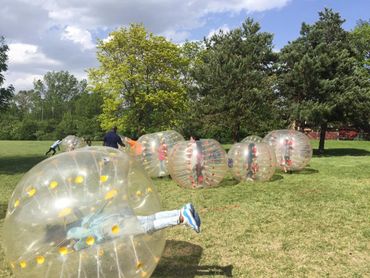 Bubble Soccer rentals introduces bubbles to the sport of soccer. Players strap inside a bubble and play various games inside the bubble, including soccer, last bubble standing, protect the president, and sharks & minnows. We also offer other party equipment rentals, such as fowling, soccer darts, giant connect 4, and archery tag!